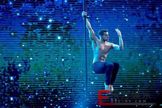 来自西班牙的高颜值型男Saulo仅凭借着肢体的力量,在空中飞杆上表演了一系列高难度的舞蹈动作,配合大屏幕不断变化的绝美背景,令观众沉醉其中。在将力量美与柔和美完美融合的同时,他也大秀8块腹肌的完美身材,让包括三位女见证官在内的全场女生都燃起了“少女心”。见证官李玟更是大胆询问其是否单身,再次惹来现场观众的热情欢呼。这样的场景让现场唯一的男性见证官大卫表示很是“吃味”。不过对Saulo的表演,大卫也不得不表示赞美,表示这是他日以继夜训练的结果。Saulo在现场还与大家热情分享了自己保持身材的秘籍,并现场教学王祖蓝表演空中飞杆。形如“北京烤鸭”的推荐人引发全场爆笑,也让人不禁感慨Saulo在表演时的难度和压力。