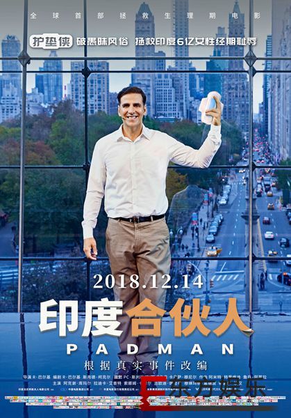 由阿克谢•库玛尔领衔主演,拉迪卡•艾普特、索娜姆•卡普尔等主演的励志燃情电影《印度合伙人》近日定档12月14日,并发布了定档终极海报。该片2018年2月19日印度上映后,在印度地区获得了超过《神秘巨星》2倍的超高票房和口碑。IMDb的评分高达8.4分。《印度合伙人》(曾译名 护垫侠)是阿克谢•库玛尔又一部口碑神作。