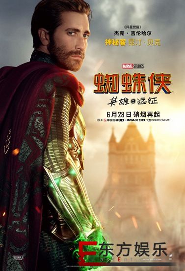 本片最吸引人的新角色“神秘客”,由好莱坞实力派巨星杰克·吉伦哈尔饰演。单人海报中,他在伦敦塔桥前转身回望,嘴角上扬,目光深邃,神情中透露着一丝让人捉摸不透的神秘,手臂释放出绿色能量,似乎时刻准备投入战斗。细心的网友不难发现,神秘客是这组海报中唯一一个位于左侧的人物,加上他神秘莫测的表情,更让人好奇他的真正身份。他与蜘蛛侠会如何协作抗敌?两人关系是否会发生重大转折?影片《蜘蛛侠:英雄远征》将最终为我们作答!