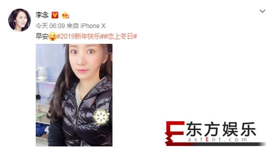 日前,李念在微博晒出自拍照,并配文:“早安 #2019新年快乐##恋上冬日#”,一大早就起来开工的她整个人看起来元气十足,状态满满!照片中的她身着黑色羽绒服内搭白色T恤,看得出还在化妆间做造型,别在头上的发夹也是实力抢镜。