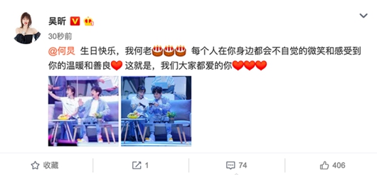 快乐家族成员为何炅庆生,亲密称他为“我炅”“我何”!4月28日是何炅的46岁生日,快乐家族成员谢娜、李维嘉、杜海涛、吴昕以及张杰、彭昱畅、王嘉尔、魏大勋、黄明昊踩点在微博发文,为何炅庆祝生日。