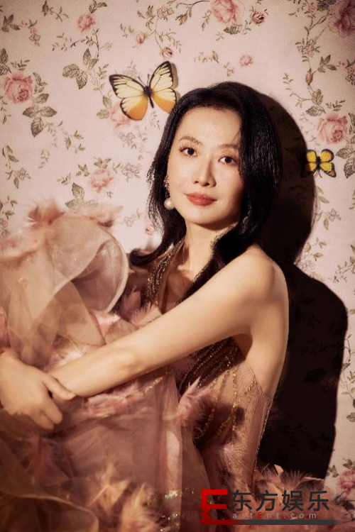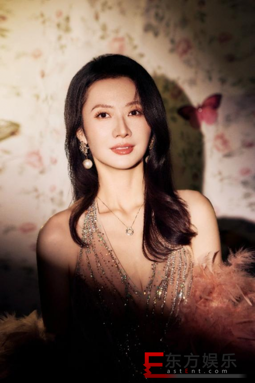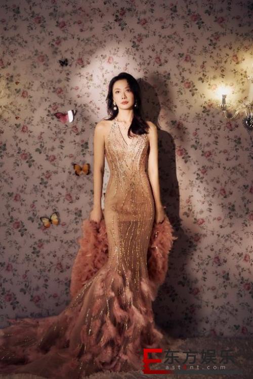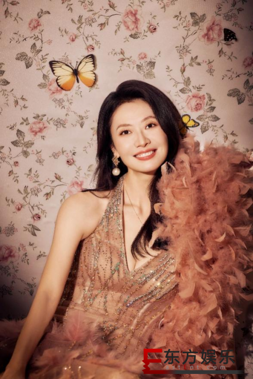 在电影之夜《不丢人》的表彰仪式上,杨斯身着深V粉色亮片鱼尾礼服,搭配蓬松羽毛披肩,与精致珍珠耳饰相得益彰。在花卉背景墙前,她从容微笑,尽显她一贯的优雅成熟演员风范。