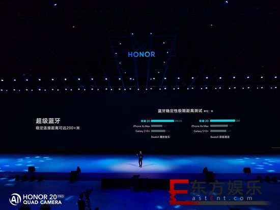 荣耀20系列此次还带来了超级蓝牙功能,相比普通蓝牙功能拥有更强的穿透力,在无障碍测试时,蓝牙连接beatsX耳机进行听音乐和打电话,荣耀20系列极限距离可达200米+,远超于同期旗舰。