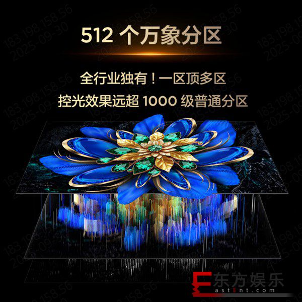 以TCL 98Q6L支持的512万象分区为例,不同于普通电视背光分区,万象分区对发光芯片、透镜技术、OD设计、控光算法和屏幕等七大底层技术实现突破,新一代聚光微透镜和微距OD技术,实现系统级控光,效果是普通分区控光的数倍,达到千级普通分区控光效果。观看时,画面没有泛白与光晕干扰,景物层次分明,光影过渡自然流畅。