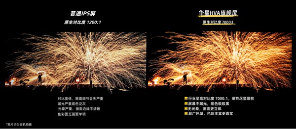 T7L Ultra不仅抗反光表现出色,还拥有超高原生对比度。蝶翼星曜屏作为华星旗舰级HVA屏,原生对比度高达7000:1,是IPS硬屏1200:1的5倍。而对比度越高,在展示夜晚或者灯光昏暗的暗场场景时,带来更深邃均匀的黑色画面、更清晰的显示边界。