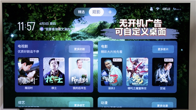 此外T7L Ultra日常用起来也特别省心。之前旧电视开机要等半天广告,找想看的剧还得翻好几层菜单,家里老人根本弄不明白。换T7L Ultra后,它搭载的灵控系统 3.0 直接没有开机广告,点开就能用;桌面还能像手机一样自定义,我把爸妈爱听的戏曲、孩子喜欢的动画片都放在首页,大图标一看就懂,一键就能打开,超级方便!