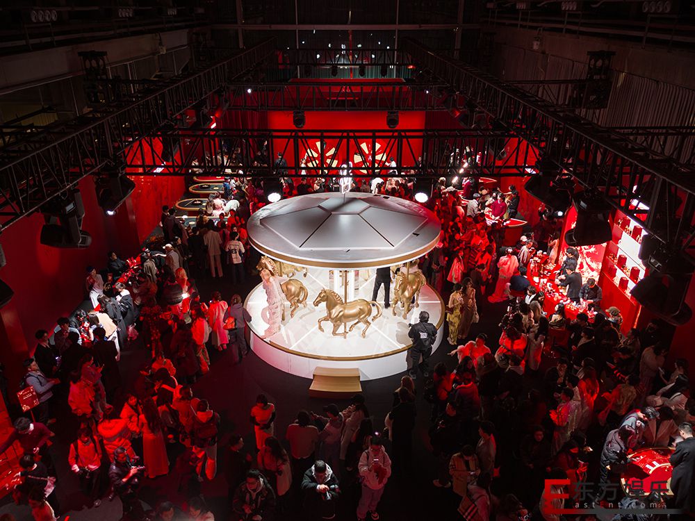 娇兰以赤红之色为主色调渲染鸿运赢家体验空间,寓意红运启新,迎接整年胜意美好。空间中央金逸骏马旋转而行,宛若驰骋之姿,传递娇兰“前程坦途,赢面而来”的新年祝愿。