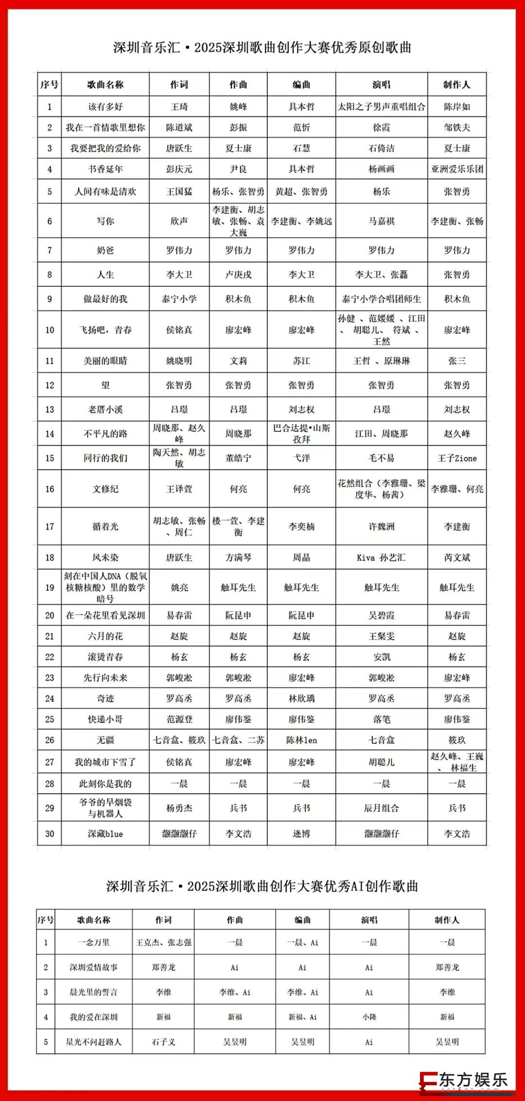 深圳音乐汇·2025深圳歌曲创作大赛榜单
