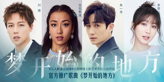 今日,人人都是志愿者关爱精障人群艺术天赋公益项目官方推广歌曲《梦开始的地方》及MV发布上线。朱一龙、刘维、吉克隽逸...